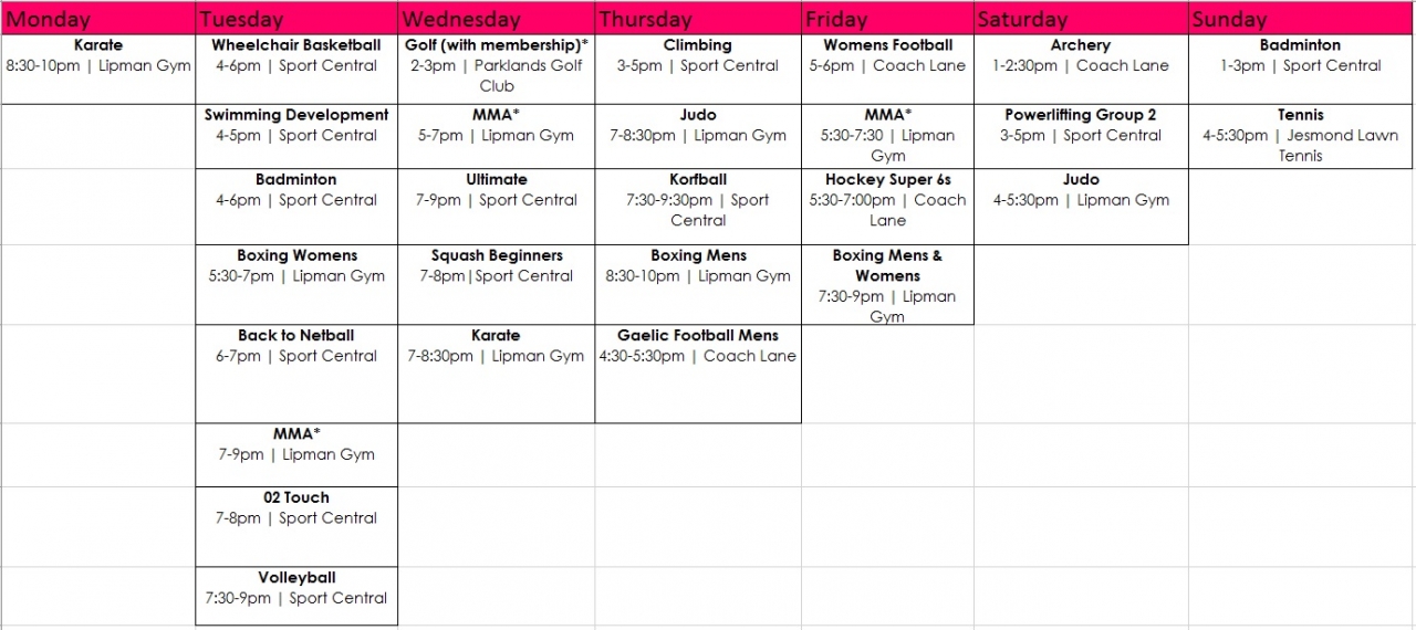 Theres no need to book, just simply turn up and join in! All sessions are open to everyone of all levels and take place across campus. For a map of all facilities click here.
